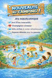 - Un espace aquatique avec une piscine chauffée accessible de mai à septembre et une aire de jeux aqualudique pratique si vous ne voulez pas forcément aller à la mer.